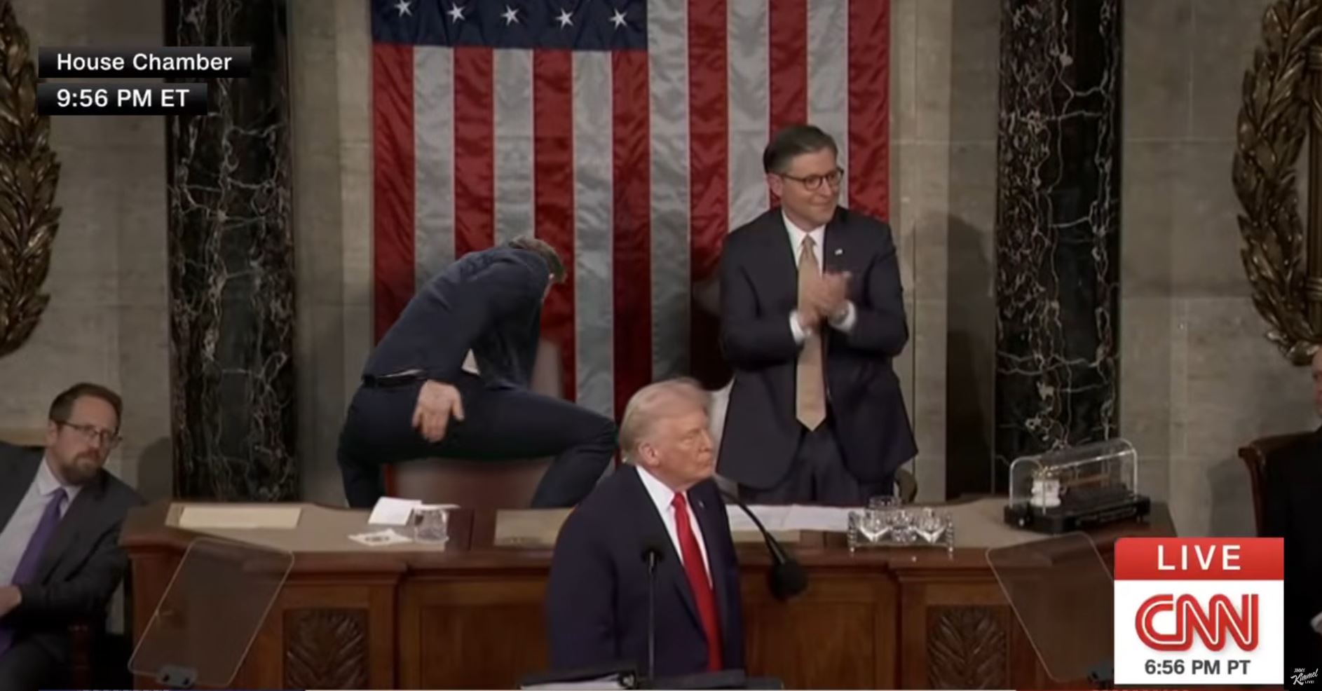 Мы больше не можем это выносить. Мы не привыкли побеждать в нашей стране. До вашего прихода мы всегда только проигрывали, но теперь мы побеждаем слишком много. А я говорю: нет, нет, нет. Вы снова будете побеждать. Вы будете побеждать по-крупному. Вы будете побеждать больше, чем когда-либо. И чтобы доказать это, чтобы доказать это, сегодня вечером с нами группа победителей, которые только что заставили гордиться всю нацию — мужская олимпийская хоккейная команда, завоевавшая золото», — сказал он, после чего в зал Конгресса вошли члены мужской сборной США по хоккею, вернувшиеся с Олимпийских игр с золотыми медалями. (Отсюда.)