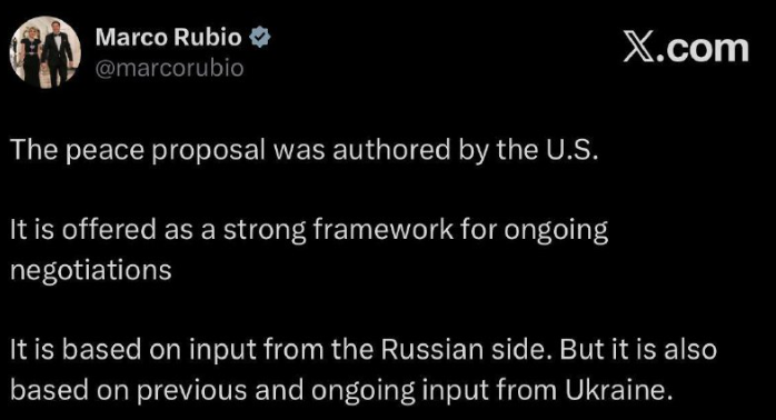 Так называемый мирный план для Украины из 28 пунктов не является планом администрации. Об этом заявили двое американских сенаторов со ссылкой на слова государственного секретаря Марко Рубио, пишет Sky News.