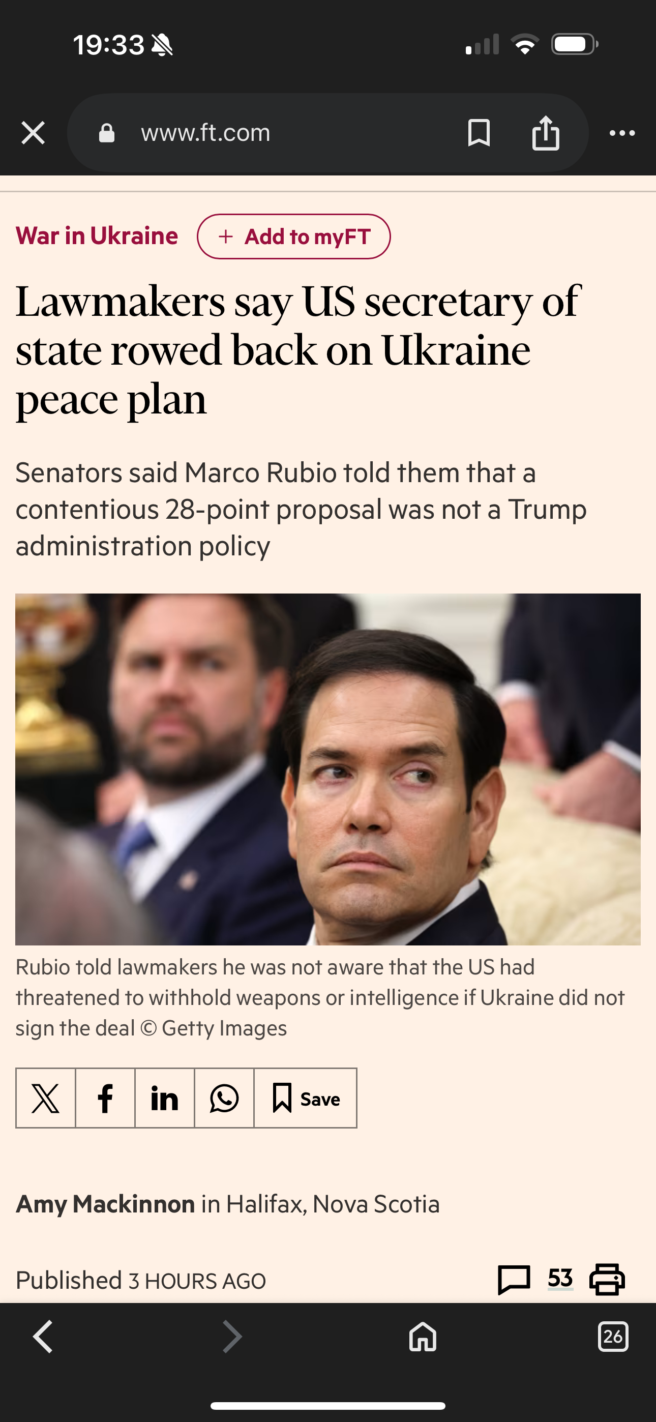 Рубио также сообщил сенаторам, что ему не известно о каких-либо угрозах не передавать американское оружие или разведданные Украине в случае, если они откажутся подписать соглашение, говорится в материале.