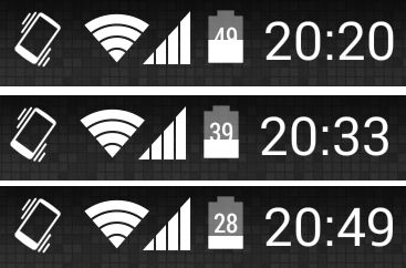 В стандартном Android отсутствует возможность вывести в строке состояния процент заряда аккумулятора. Причем в самой системе такая возможность есть, просто она спрятана внутри и ее просто так не включить.