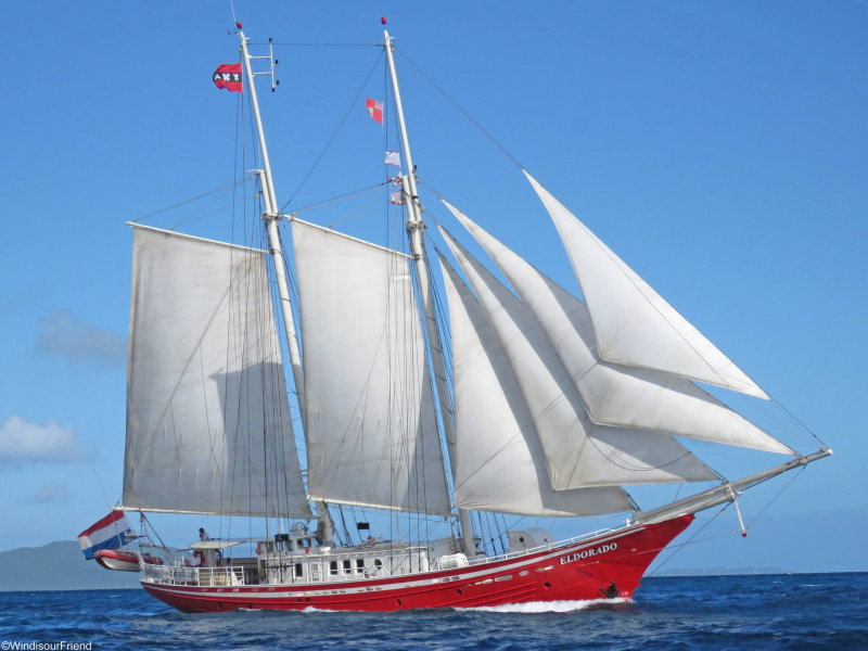 Это очень специфический парусник. Во первых он здоровый, 45-50 метров, водоизмещение тонн на 700 минимум, металлический корпус, скорее всего сталь, и океанский борт. А по требованиям Регистра на такую шхуну нежно минимум 6 человек экипажа с сертификатами. При любом раскладе это серьёзное судно.