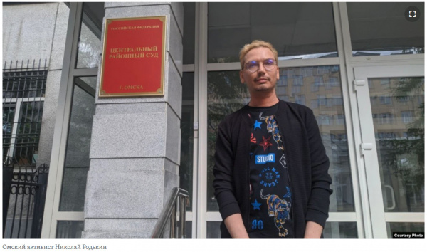 В Омске центральный районный суд оштрафовал на 30 тысяч рублей активиста Николая Родькина по статье о "дискредитации вооруженных сил России". Молодой человек ранее провел в центре города акцию в память о погибших в Украине мирных жителях. Он прошел по главной улице с букетом желтых хризантем, перевязанным голубыми лентами, и возложил цветы к известным скульптурам сантехника "Степаныча", и жены сибирского генерал-губернатора "Любочки". На памятники он повязал зеленые ленты. Видео с акцией, призванной привлечь внимание к войне с соседним государством, было опубликовано в соцсетях.