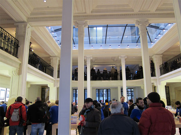 В Париже Apple Store со стороны выглядит как-то траурно. Хотя внутри - аж три этажа: подвальчик, здоровенный первый этаж и еще балкончик.