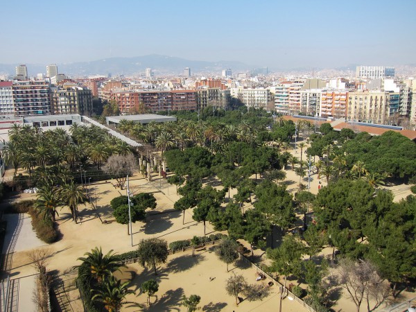 Сверху можно чудесно пофотографировать. Вот монумент на Площади Испании, левее - выставочный центр, где сейчас MWC 2012.