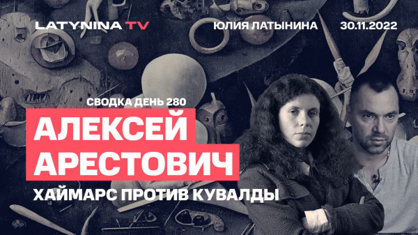 Арестович у Юлии Латыниной 30 ноября. Отличная передача получилась (Арестович явно был в ударе), много всего обсудили. Вероятность нового нападения из Беларуси, Пригожин с кувалдой, странный пост (быстро удаленный) Урсулы фон дер Ляйен по поводу 100 тысяч потерь у Украины, реальные потери украинцев, боевой дух российских военных (у него там было отличное определение того, что боевой дух - это как постоянно сползающие штаны, которые нужно подтягивать), ну и даже Илона Маска с Твиттером успели обсудить.