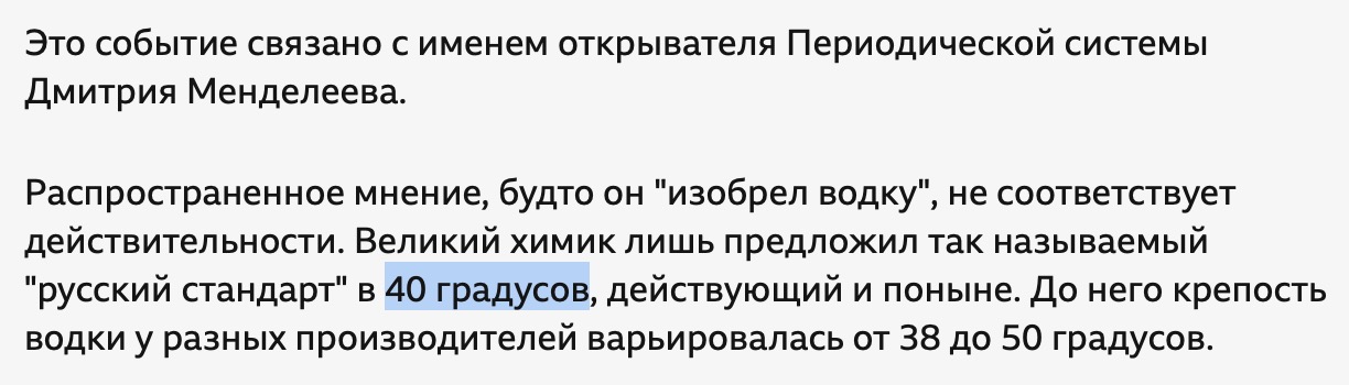 Это всё понятно, но народ, в подавляющем большинстве, не указывает крепость водки в процентах.