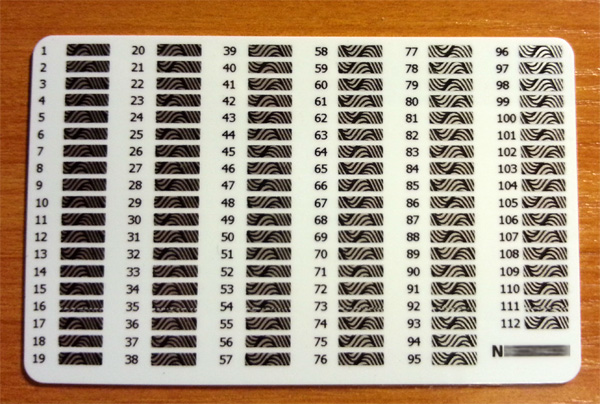 Что интересно, в моем испанском банке принята более удобная система с этими карточками. Когда заводится счет, тебе выдается карточка с этими кодами. Никакого защитного слоя там нет. Порядковые номера кодов состоят из трех цифр и они идут по возрастанию сквозняком через все карточки. Сами коды состоят из четырех цифр. Так вот, когда в банкинге нужно подтвердить операцию, система называет случайный порядковый номер из твоей карты и просит ввести код. Таким образом, у тебя всегда используется только одна карточка и тебе не надо получать другие. Если карточка вдруг потеряна или скомпрометирована - просто идешь в банк и получаешь новую. Это намного проще и удобнее, на мой взгляд.