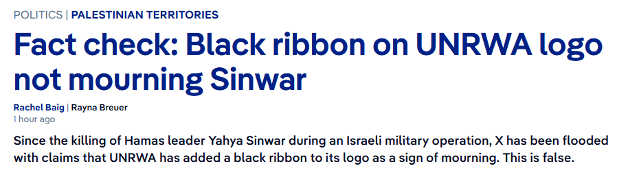 Since the killing of Hamas leader Yahya Sinwar during an Israeli military operation, X has been flooded with claims that UNRWA has added a black ribbon to its logo as a sign of mourning. This is false.