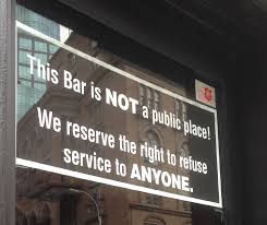 Не проще ли, если владелец бара будет обязан вешать на дверях список своих предпочтений (политических, этнических, сексуальных и т.д.), и посетители сразу будут знать хотят ли их там и ,что не менее важно, хотят ли они оставлять там деньги?