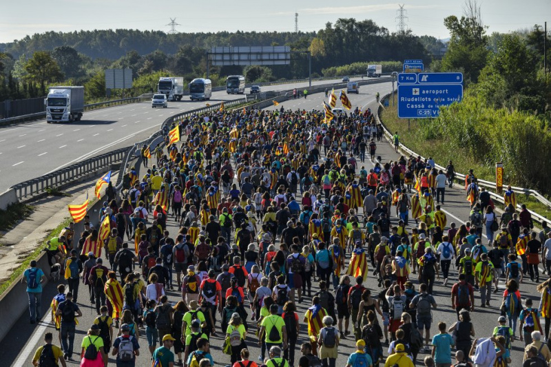Пять колонн маршей независимости перекрывают движение на двух главных дорогах Каталонии AP-7 и AP-2, а также на четырех второстепенных дорогах. Это колонна из города Берги -  EFE.
