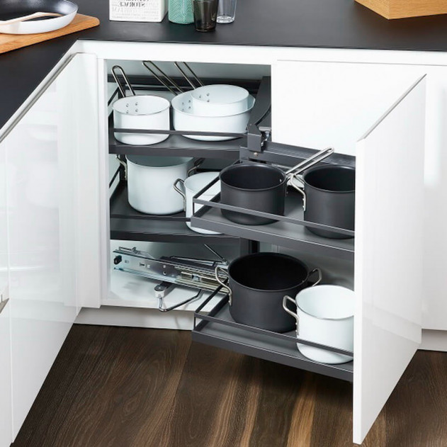 представьте насколько более эффективно используется такой угол в кухне. Даже если без крутящихся полочек внутри. Достаточно только дверок. Про красиво/некрасиво я вообще молчу. Я не понимаю как могут шухлядки (или правильно шуфлядки?) такой узкой формы быть удобными в использовании. И как их по удобству вообще можно сравнивать с такими как по моей ссылке.