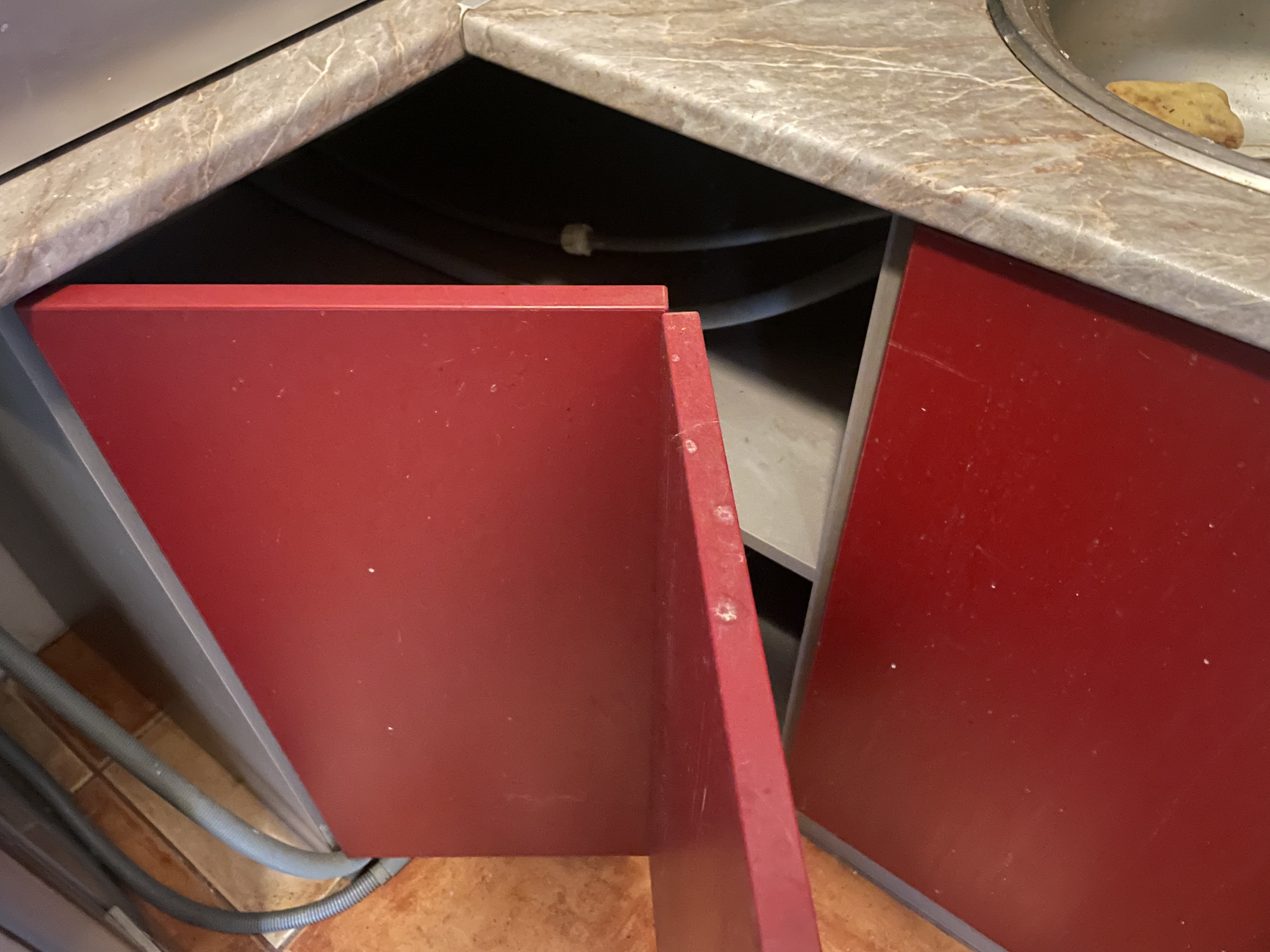 Для шкафчиков дверь тяжеловата, она отвалилась (не в первый раз, видно что ее ранее уже укрепляли). Ну мы пока собирались силами чтобы повесить дверь обратно, констатировали, что нам там нужны открытые полки 🤣