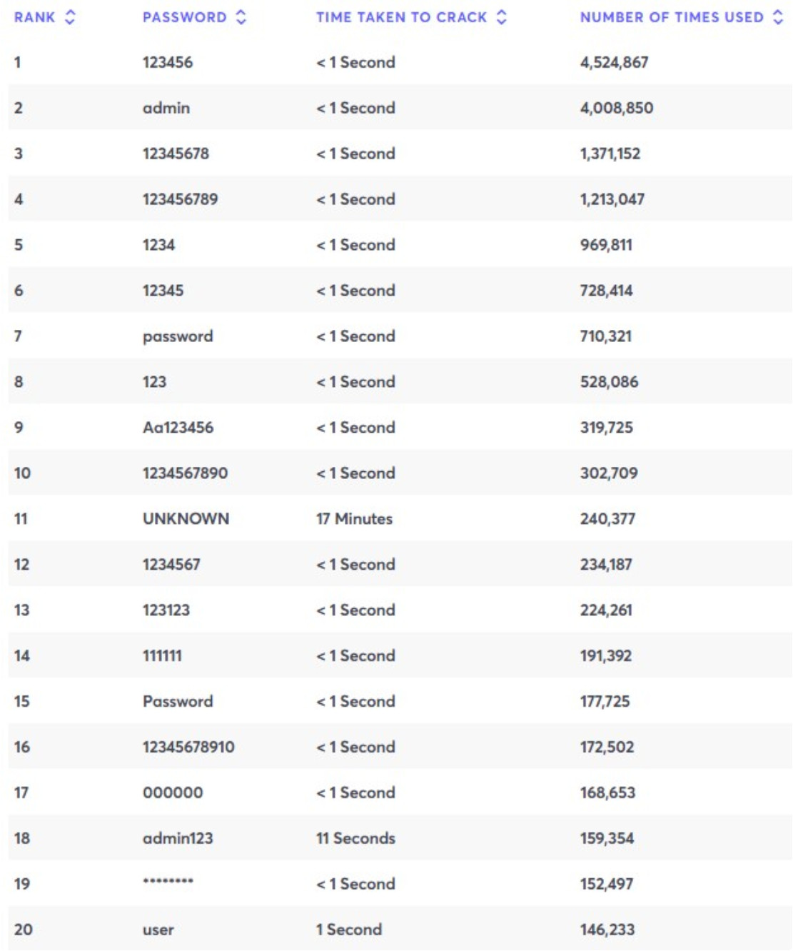 XXI век на дворе. Но сколько ни объясняй людям, что использование пароля "password123" или "123456" - это все равно что не использовать никакой пароль, тем не менее у массы пользователей пароли взламываются менее чем за секунду.