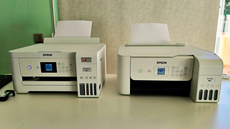 Купил я новый принтер - Epson EcoTank ET-2856 (на фото слева). Сначала начал его подключать через приложение Epson Smart Panel. Приложение принтер видит, предлагает настроить сеть WiFi. Выбираю сеть, ввожу пароль. Приложение пишет, что принтер в сети не видит. Ну ОК, настраиваю на самом принтере. Долго думает, потом пишет, что неверный пароль. (Пароль сто процентов верный, я много раз перепроверил.) Стал подключать через программу настройки на ПК - с помощью подключенного к принтеру кабеля USB. Ввожу данные сети. Вроде принтер подключился, даже виден в сети и даже распечатал удаленно страницу. С другого компьютера в сети не виден. Выключаю принтер, включаю - вообще нигде не виден. Опять настраиваю сеть на принтере. Вроде даже подключилось, на пароль не ругнулось. Но в сети принтер не виден.