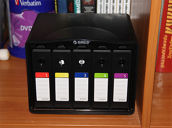 Ну и третий вид - смотрится лучше всего. Это бокс на пять дисков, в котором винты хранятся вертикально.