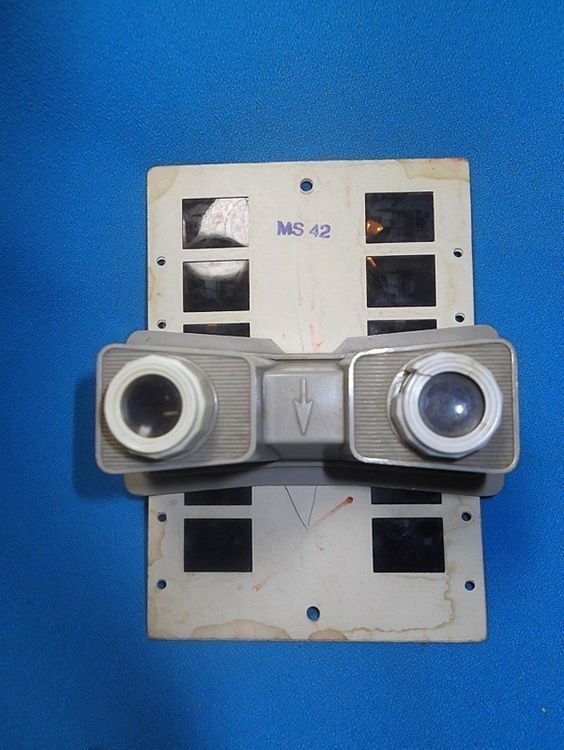 У меня точно такой фильмоскоп был (проектор). Я с ним в детстве играл, воображая что это - гиперболоид инженера Гарина. Я был начитанный, хотя и фильм был, почти одноименный 😄