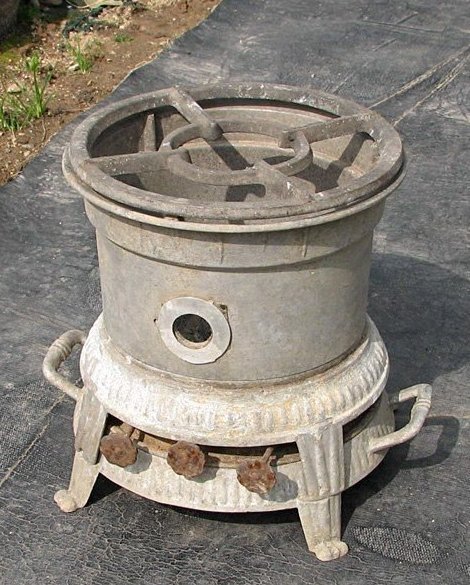 Керосинка для готовки - у нас в деревне такая была. В кругленькое окошко было видно, как горят три фитиля.