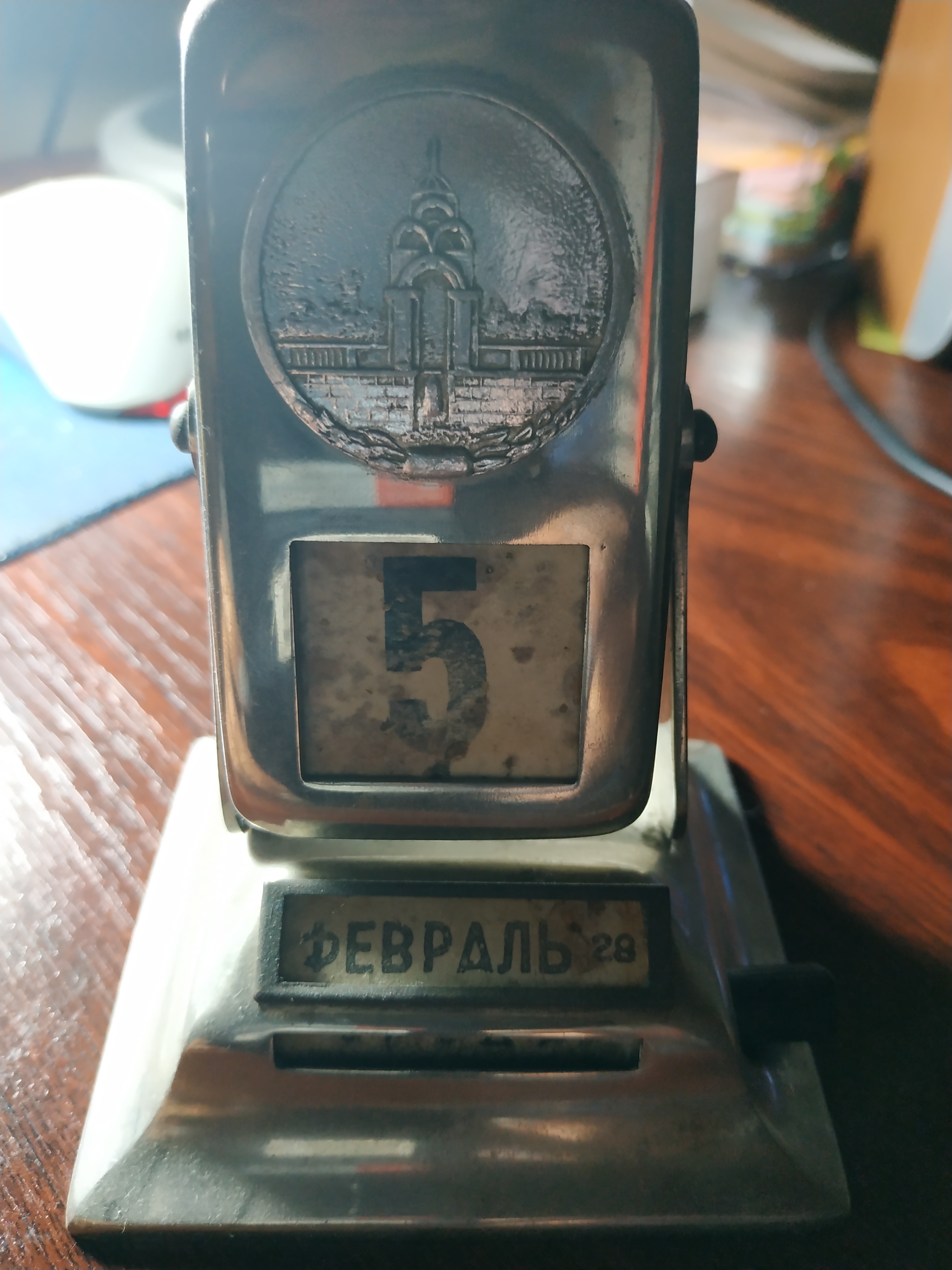 У меня есть вот такой. Уж не помню, где нарыла, был в разобранном состоянии (верхняя часть), долгое время с ним дети баловались. Потом собрала, теперь имею антиквариат. 😄 Помню, в детстве у соседки любила листать, он тяжеленный такой, цифры дней в металлической окантовке, громко так щелкали при переворачивании. У этого состояние похуже, но воспоминания, да...