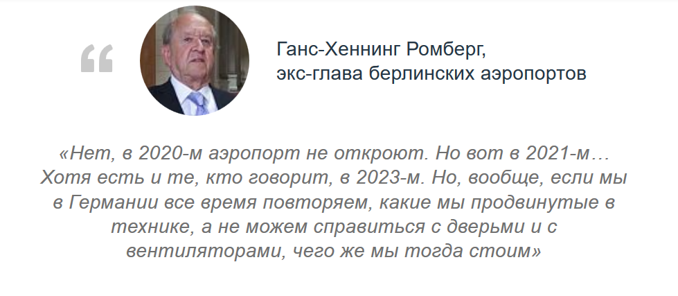 Проект немножко затянулся, но это было терпимо, потому что по старому плану аэропорт Тегель должен был работать до 2017 года включительно. Можно и потерпеть.
