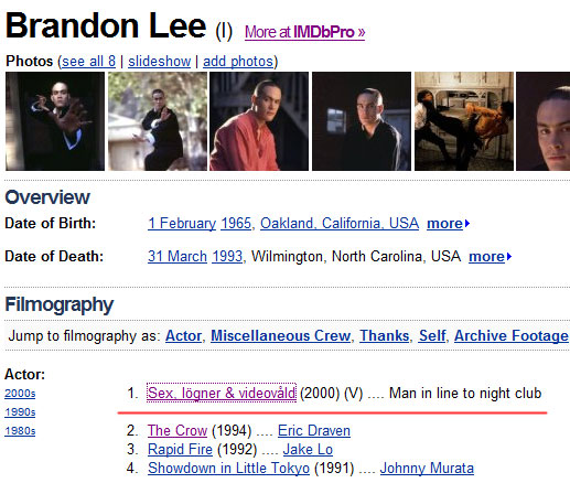 А это что за фигня в фильмографии сына Брюса Ли на IMDB? Кто в курсе?