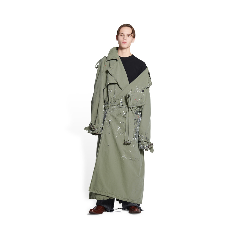 Появились же в своё время рваные джинсы, так почему бы и обосраному плащу не быть? 😉 Носить его - это уже личное дело каждого. Как мне думается, зависит от самоуважения, прежде всего. Конечно, есть такие индивидуумы, которые реагируют только на лейбл. Но так можно докатиться, что если написать на куче говна "Balenciaga", то они его с удовольствием сожрут.