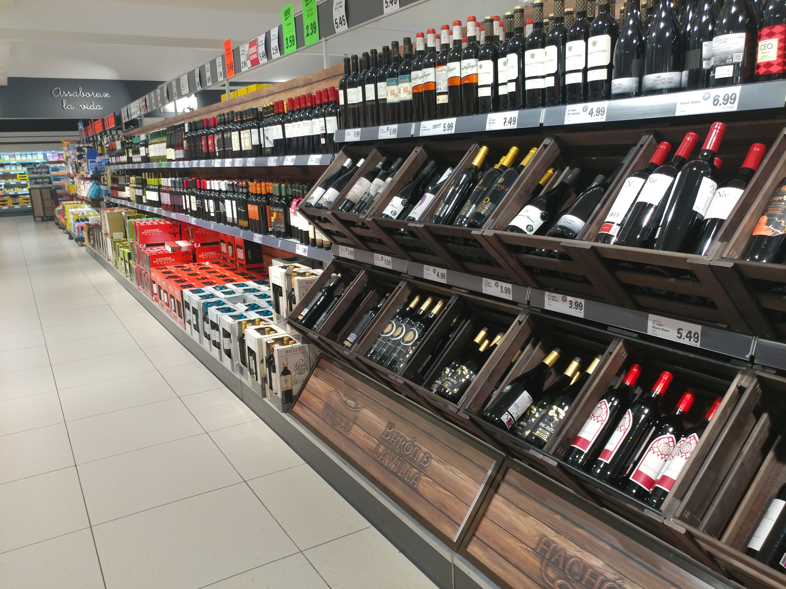 Я магазины Lidl (немецкая сеть) всегда считал очень так себе и практически никогда туда не ходил. В наших краях есть Lidl - ну чисто "Пятерочка"-"Пятерочкой". Да и друзья из Германии всегда презрительно говорили: "Lidl - это для бомжей". Ну, это они, положим, снобируют, но вот именно что "Пятерочка". Да, там можно ящик неплохого пива купить за €9,20 - есть такое. Там можно купить немецкие (а не испанские, которые заметно хуже), колбаски. Но и только-то, все остальное - ниже среднего, а уж какой там убогий винный отдел - это просто поразительно для Испании.