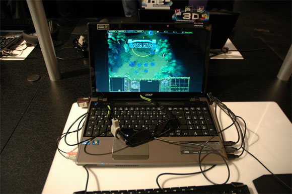 На столах стояли ноутбуки и десктопы, на которых можно было все это посмотреть - в основном, на игрушках. Чтобы получить соответствующий трехмерный эффект нужно было надевать специальные очки.