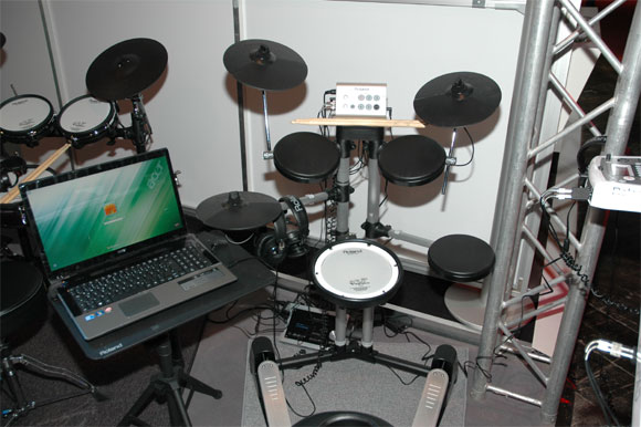 Также совместно с Acer свои технологии представляла фирма Roland. Они показали мечту моего босоногого детства - бесшумную ударную установку. Выглядит это вот так.