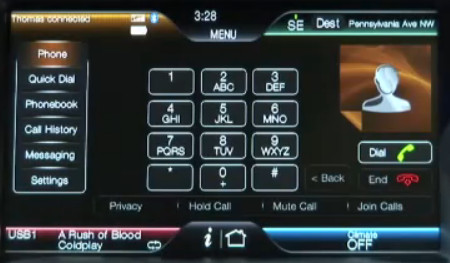 Как только вы садитесь в машину с телефоном, SYNC по BT связывается с аппаратом и после этого входящие звонки идут через громкую связь, выходящие звонки идут через громкую связь (вы можете сказать "Позвонить Василию Пупкину на домашний" - система наберет нужный номер), а поступающие SMS система зачитывает голосом - вот это крайне актуально. Причем она еще и распознает эмотиконы - всякие смайлики и так далее.