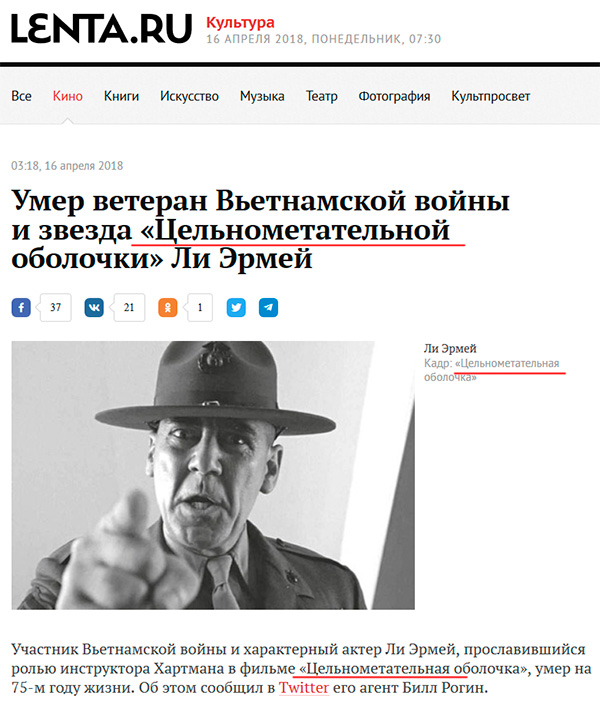 Ну, изначальный "Цельнометалический жилет", под которым фильм продавали на всех раскладках, тоже было тем еще чудом переводчества. Хорошо хоть не жиллет.