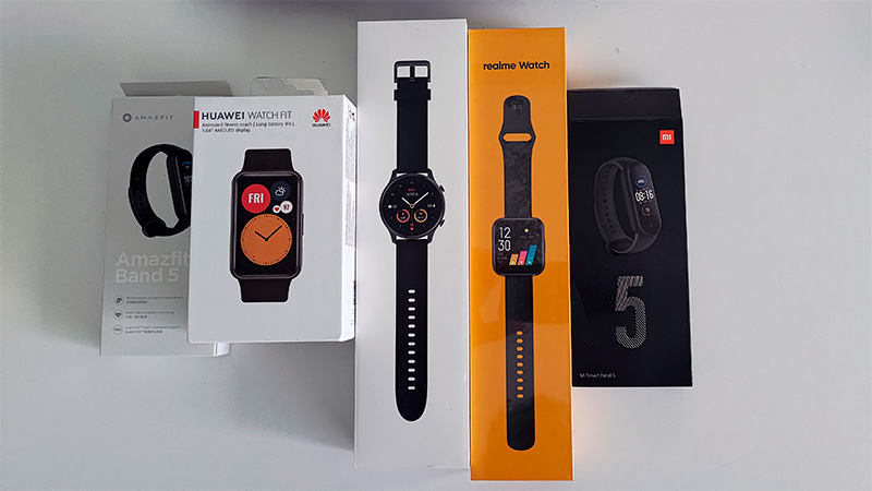 Huawei Watch Fit уже протестированы, очень понравились, скоро будет обзор. Xiaomi Watch Color (белая коробка в центре) пока вызывающе китайские и даже английского интерфейса не имеют - будут ждать обновления. Остальное будет тестироваться в порядке живой очереди.