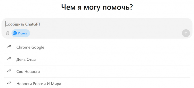 ChatGPT сам выберет поиск в Интернете, основываясь на вашем вопросе, или вы можете вручную выбрать поиск, нажав на иконку веб-поиска.