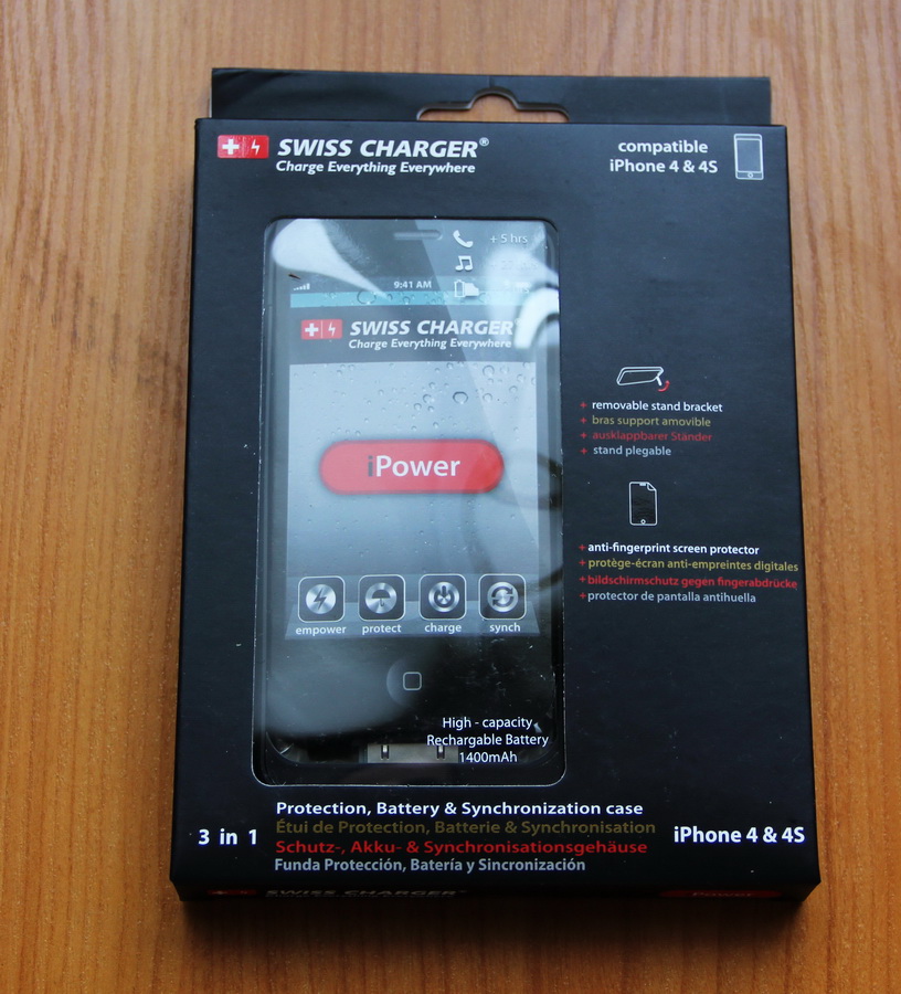 Комплектация - чехол-зарядка, кабель USB-microUSB, крышки-насадки для iPhone 4 и iPhone 4S, тряпочка для нюханья паров бензина.