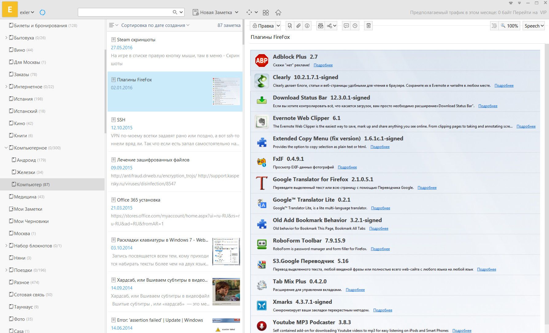 Выглядит это все вот так - очень похоже на Evernote. И вроде вполне нормально работает.