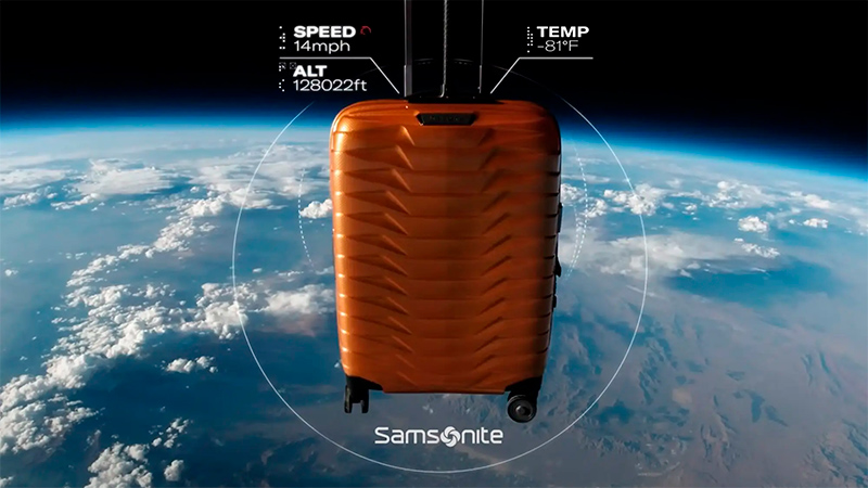 Чемодан Samsonite сбросили из стратосферы