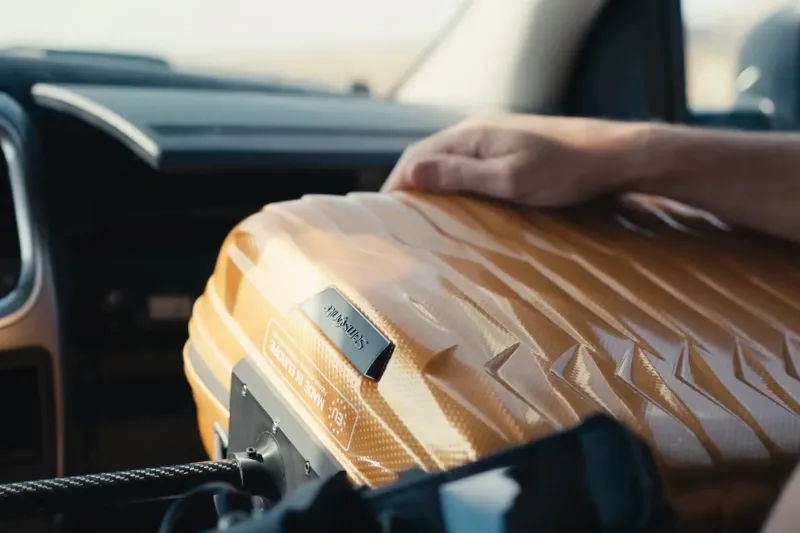 Данный чемодан считается самым легким и прочным продуктом компании - его вес составляет всего 2,1 кг. Внешняя оболочка изготовлена из Roxkin, материала, созданного специально для бренда, который является перерабатываемым, многослойным и высокоэластичным.