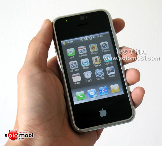 То есть нечто вроде HTC Touch, но с мордой iPhone и десктопом как у iPhone. В комплекте с повернутым не в ту сторону Applовским логотипом смотрится демонически. Стоит вроде как долларов триста.