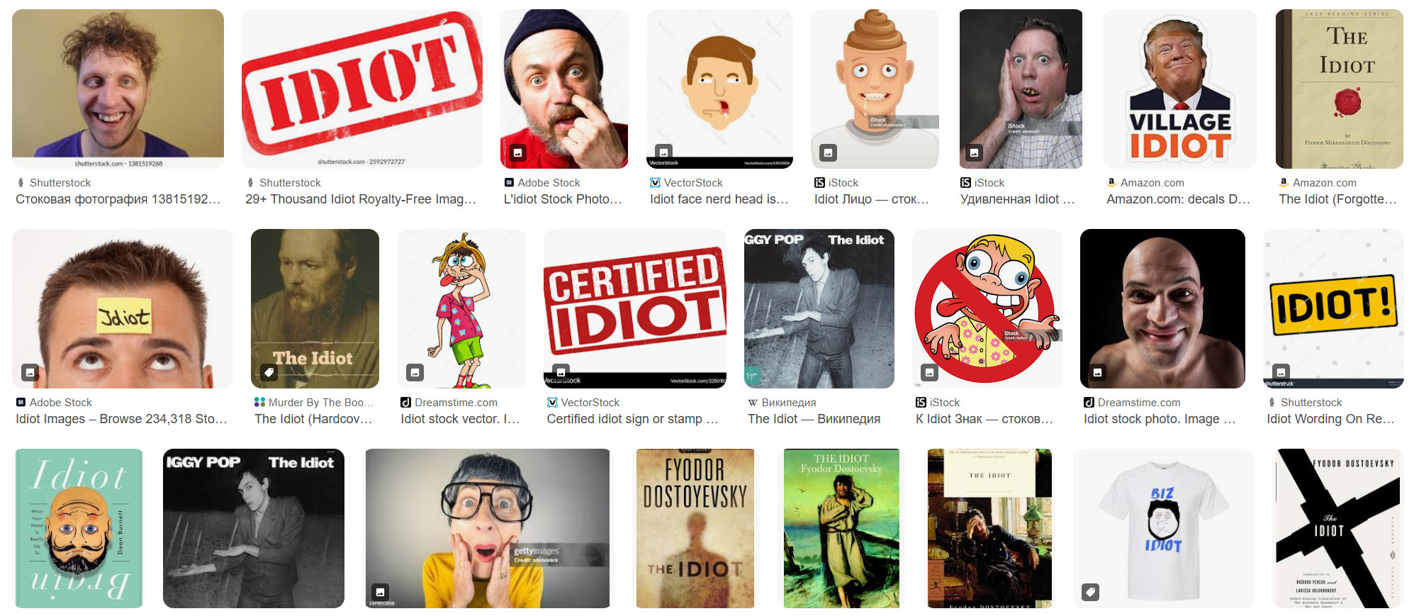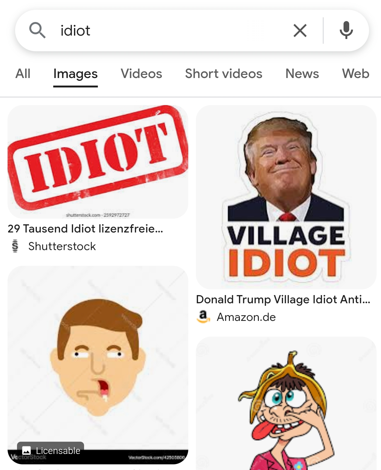 при запросе слова "idiot" Google выдает изображение Дональда Трампа