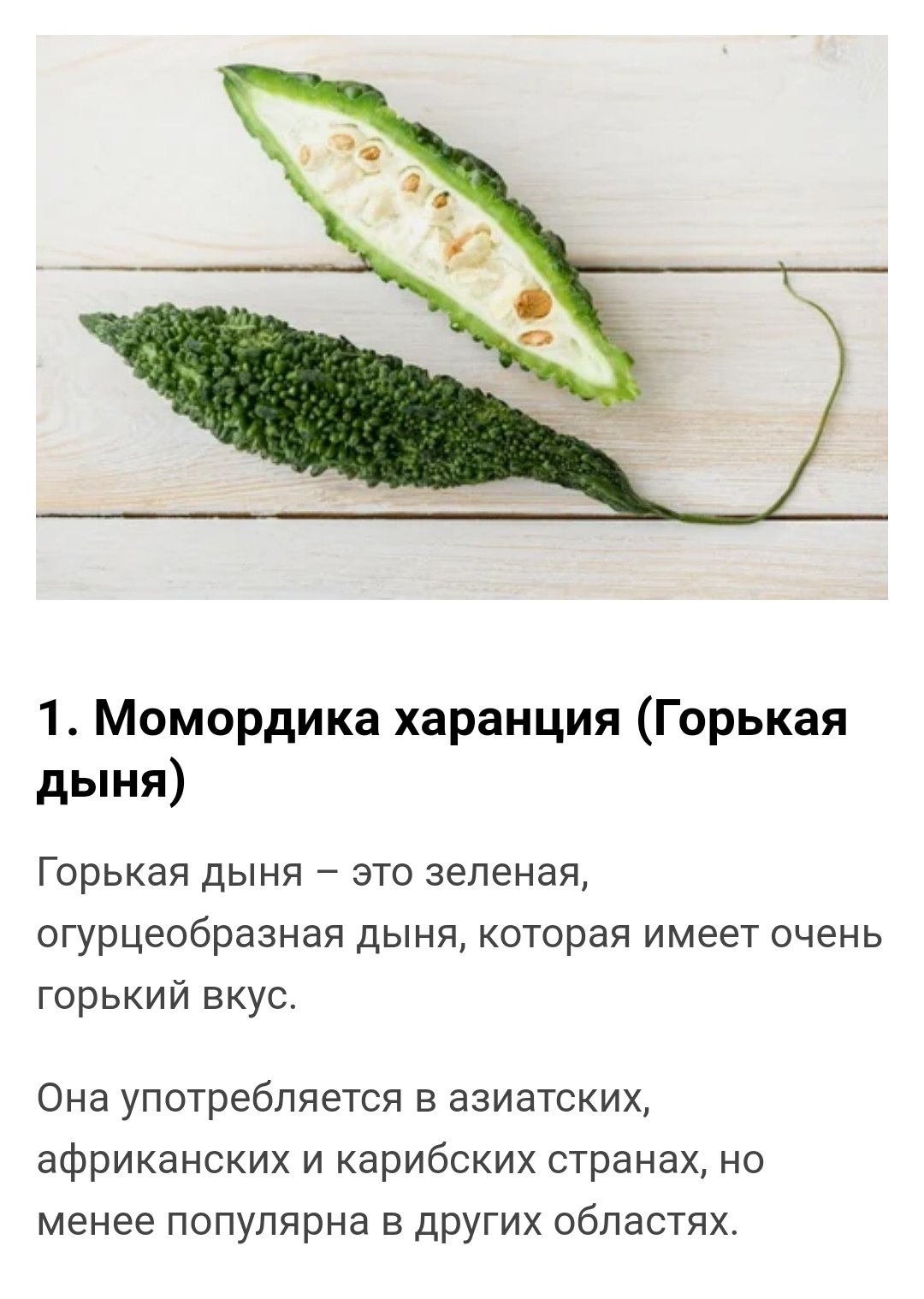 По-английски bitter melon. Очень горькая и жутко полезная для диабетиков. Быстро портится. Мою, чищу, нарезаю и замораживаю. Добавляю понемножнку в суп.