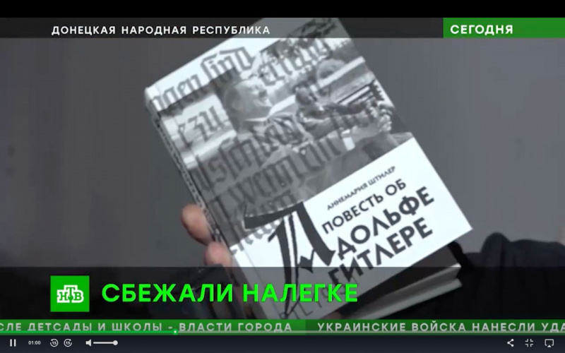 11 апреля «Известия» показали кадры из прокуратуры Донецкой области в Мариуполе. Там корреспондент обнаружил книгу «История Гестапо» Жака Деларю с портретом Гитлера на обложке (что было подчеркнуто). «Пронацистскую» литературу находили и на базе полка «Азов», среди прочего — «Повесть об Адольфе Гитлере» Аннемарии Штиллер (фрагмент из нее цитировал НТВ). А штаб теробороны ДНР демонстрировал книгу «Утерянные победы: воспоминания генерал-фельдмаршала Вермахта».