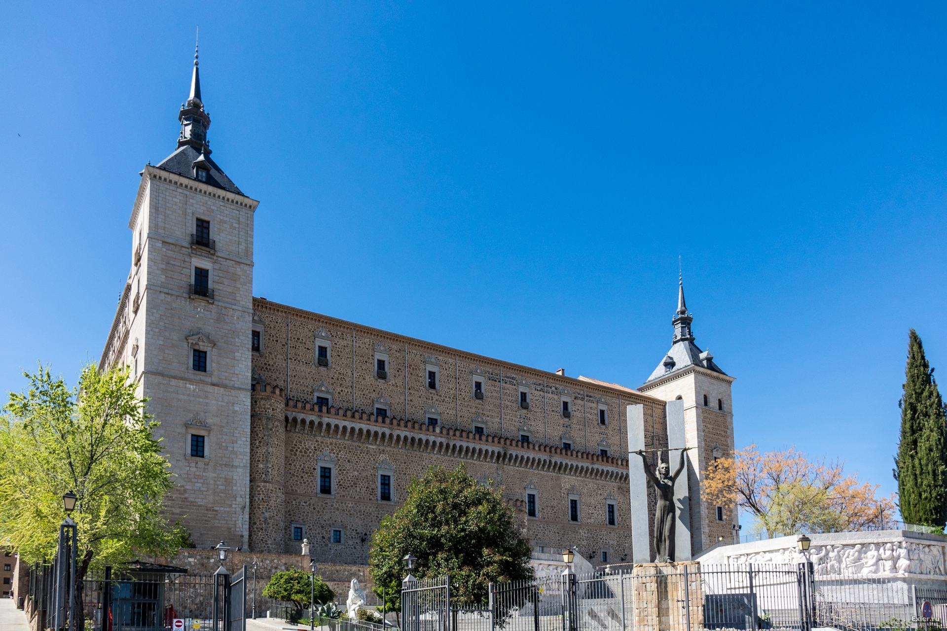 Толедская крепость была почти полностью разрушена во время Гражданской войны, поэтому это новодел. В крепости сейчас располжен военный музей и кастильская библиотека.