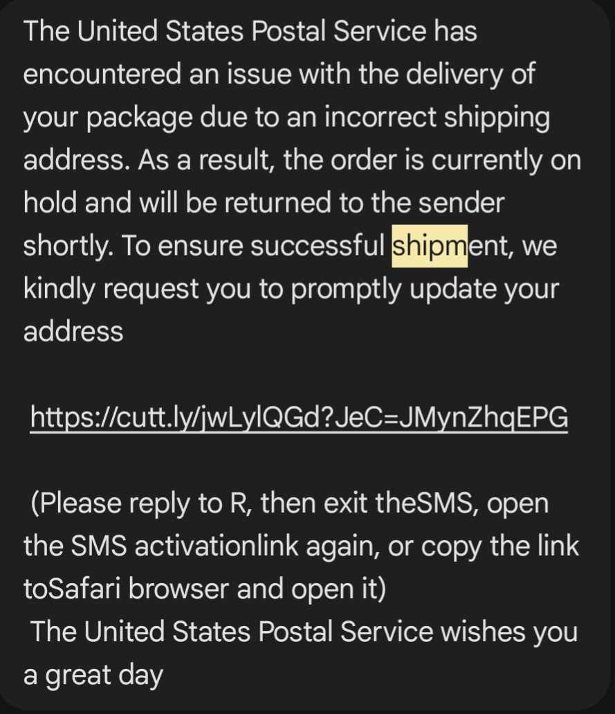 Мой сын в Англии ждет пакет с документами из банка и получает аналогичную СМС якобы от Роял Мейл.