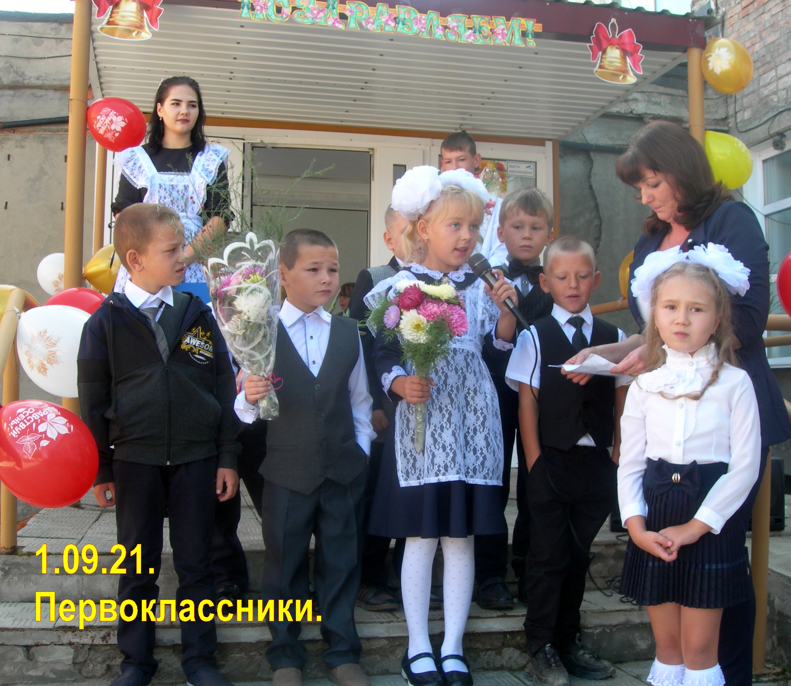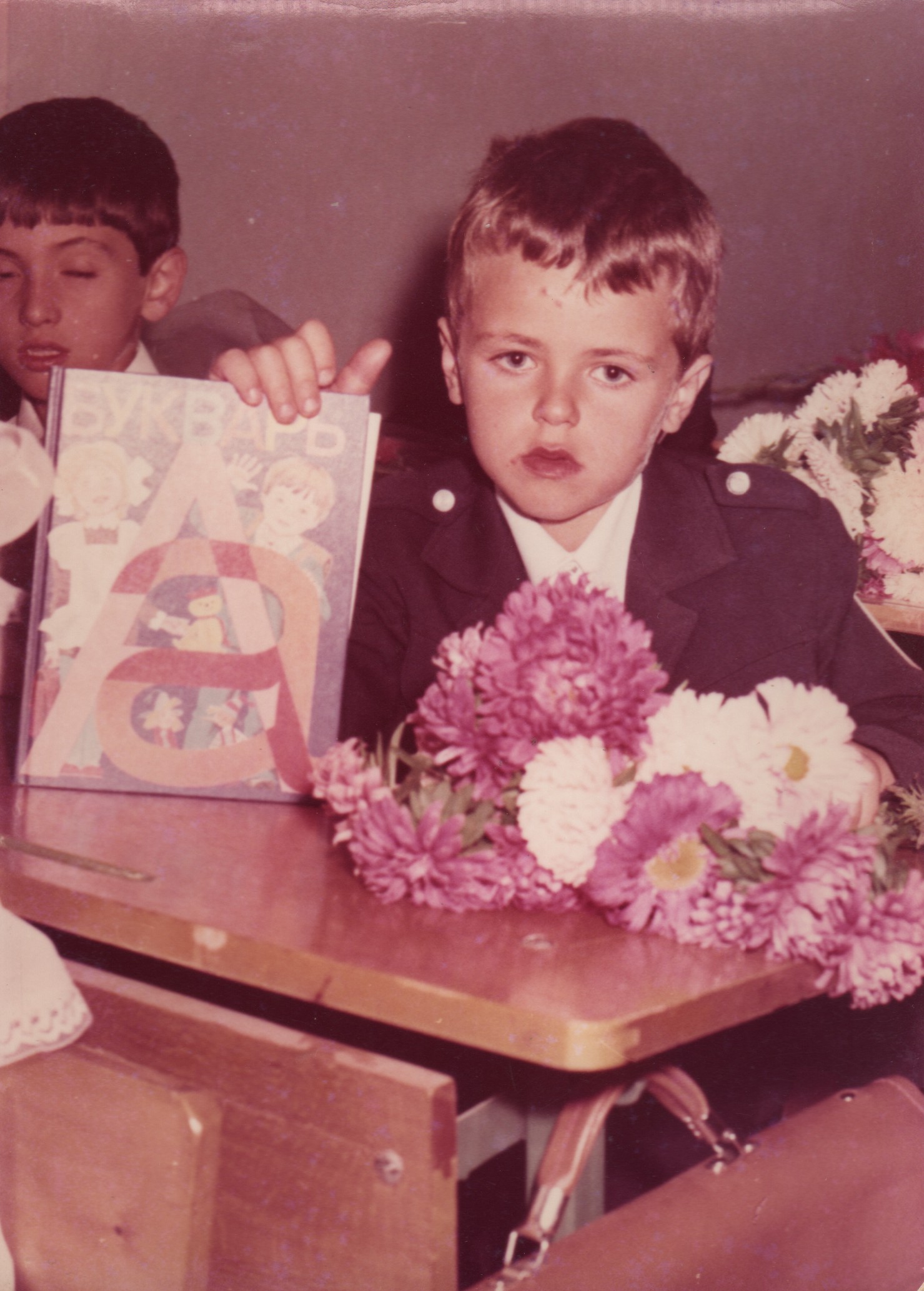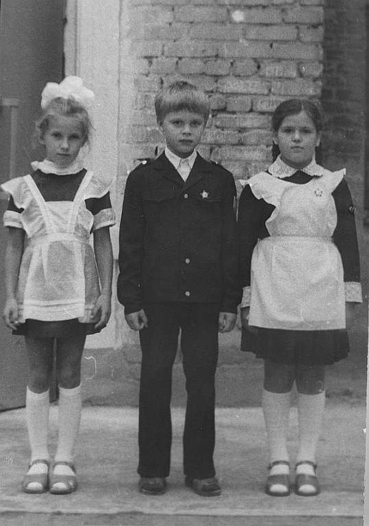 Есть вот такое. Первое сентября, но класс уже вроде третий, судя по значку.