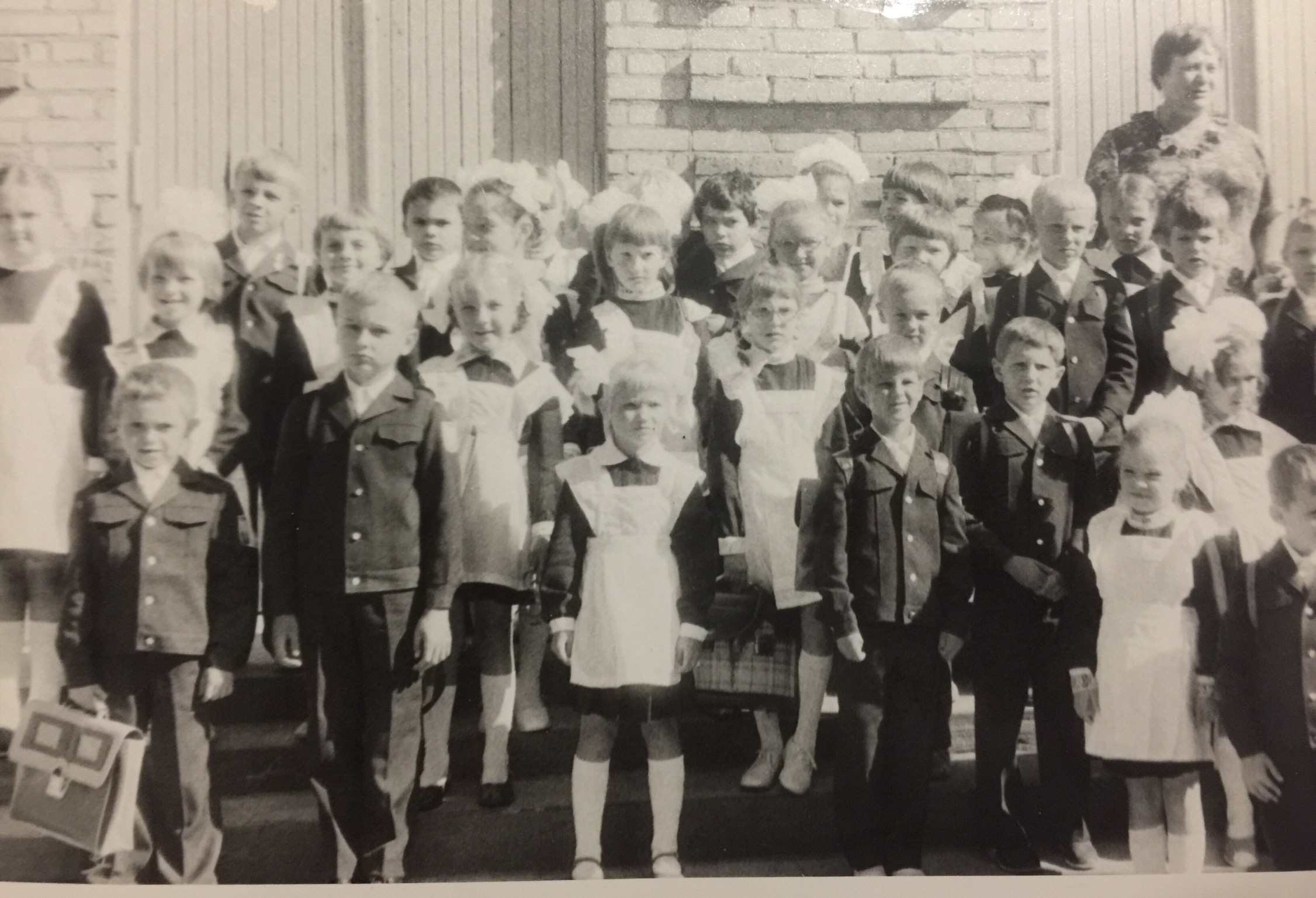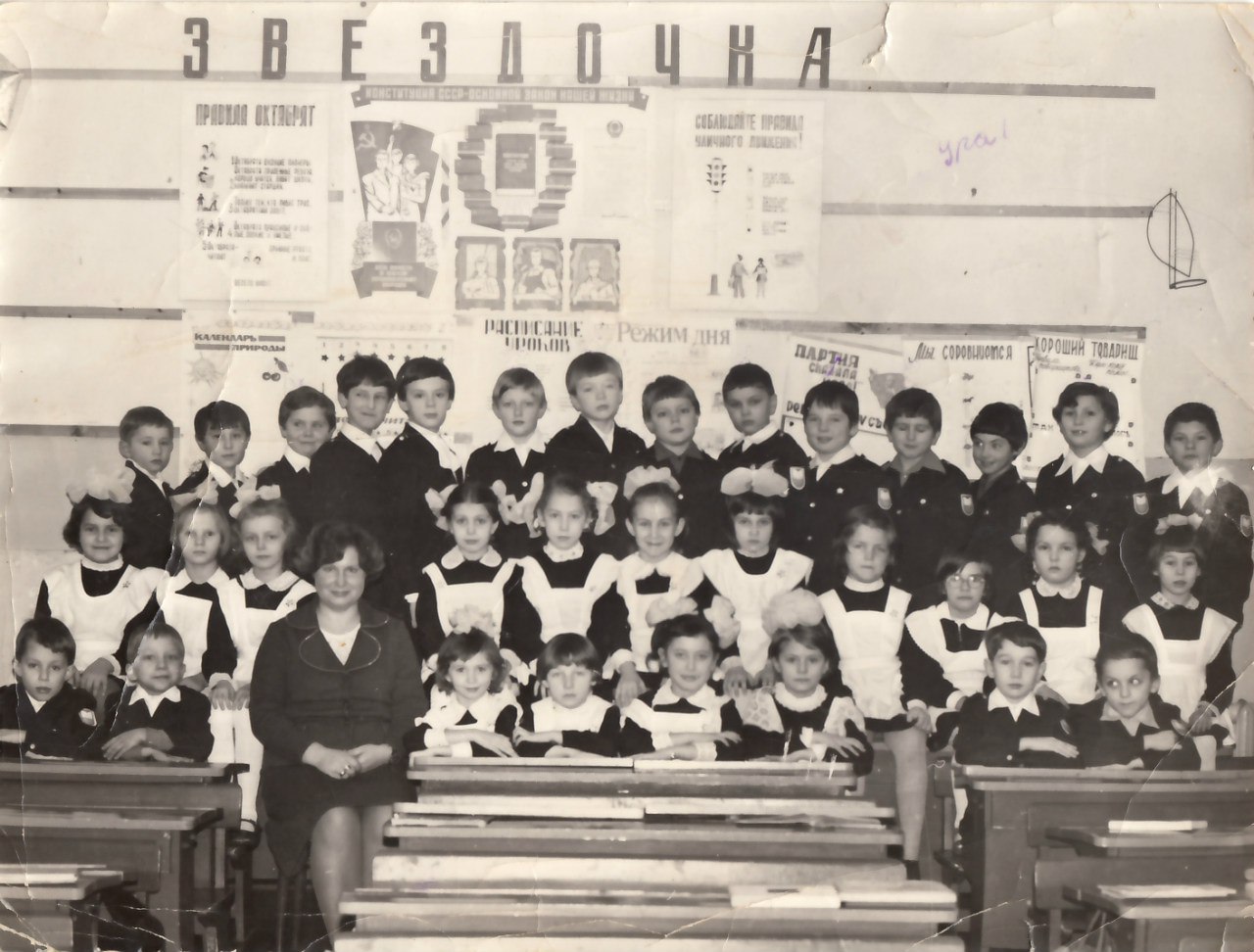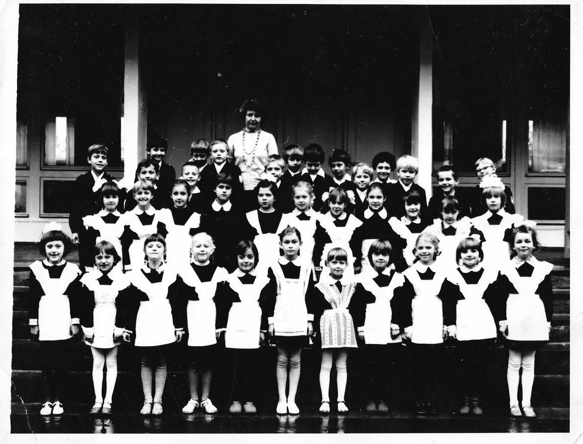 Где-то в середине августа моя будущая классная руководительница Марья Павловна позвонила родителям и попросила, чтобы я выучил какой-то стишок, буквально, четверостишие. Любое. Память у меня всегда была хорошая, я знал и стихи, и песни, но, вероятно, родителям не хотелось, чтобы я читал: "Мой друг уехал в Магадан,- снимите шляпу..." (я вообще всю песню наизусть знал). А у меня тем летом была книга "Чудаки". Сборник весёлых стихов. В ней, например, был стишок "Симонов Сазон воробьев кормил. Бросил им батон - десять штук убил". Вот, я выучил: "Велосипед меня повез, повез куда-то под откос. Но там остался без колес - и дальше я его понес". Я думал, что этот стих я буду читать на линейке. Черта с два! За неделю до 1го сентября меня и еще нескольких будущих одноклассников собрали в школе (с родителями) и дали написанные стишки. Тема была общая: как мы, первоклассники, хотим освоить все науки. По каждой науке-предмету - свой стишок (если это так можно назвать, уж не знаю, кто эти стишки придумал). Мне досталось такое: "Я хотел бы поскорей овладеть английским, чтобы в космосе беседу мне с Америкой вести!". Напомню, летом 1975г состоялся совместный полет по программе "Союз - Аполлон". Ну, вот это я и прочел на линейке. А те стихи (про велосипед) были нужны только для того, чтобы проверить дикцию и голос. Я был очень злой: я-то думал, что именно про велосипед я буду читать на линейке.