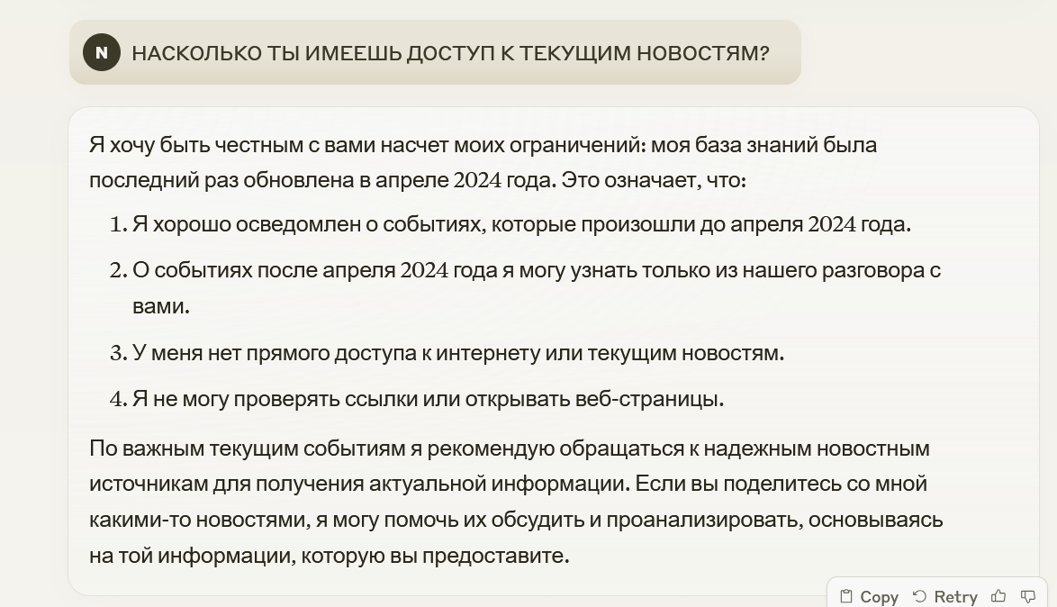 Теоретически обычный ЧатГПТ "не знает", что случилось совсем недавно. То есть если спросить, что было вчера, то он может отослать к Гуглу - у меня такое было.