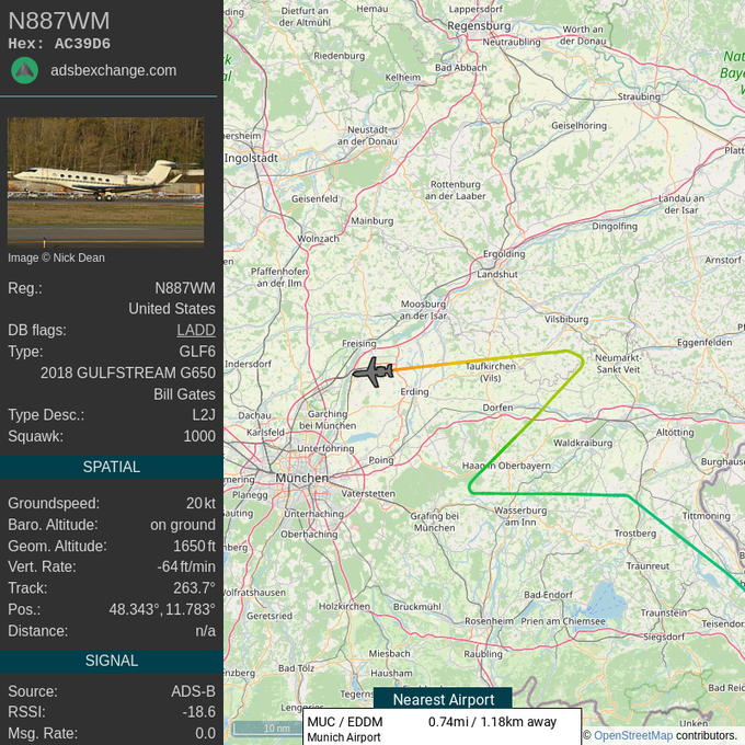 Самолет Билла Гейтса по пути в Мюнхен 18 февраля.