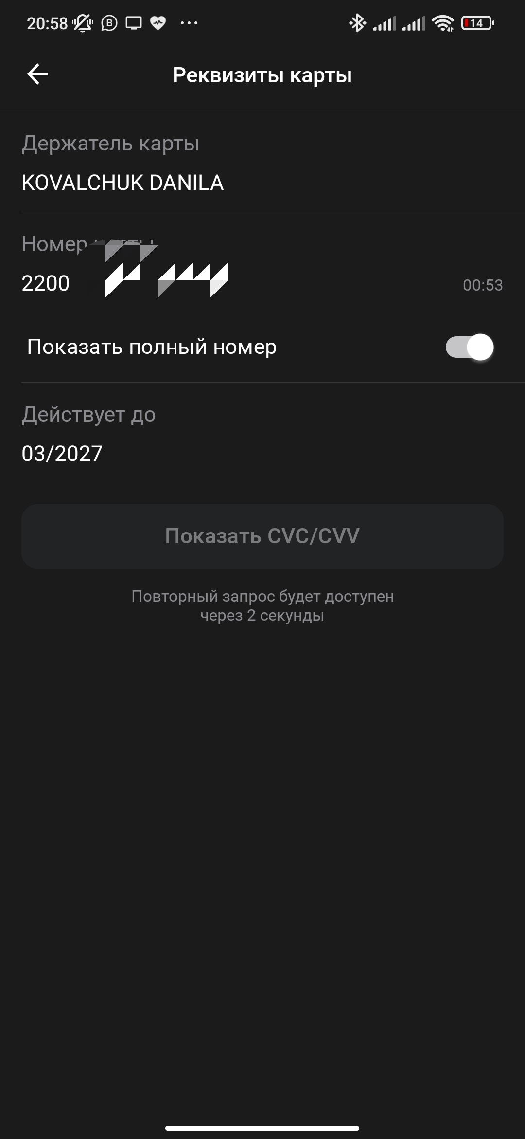 В поддержке сказали, что реквизиты появятся только вместе с пластиком. Добавить в Wallet и ApplePay я её соответственно, тоже не могу