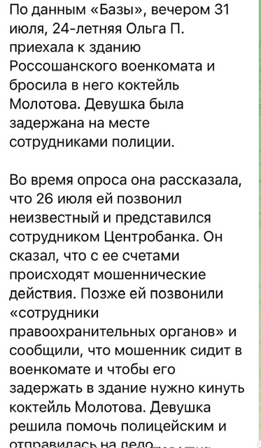 А уже затем на поджог военкомата, чтобы жертве было не до возврата этих денег