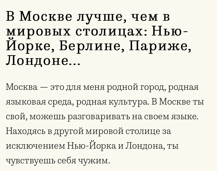 И мне очень приятно, что в Москве, которая не Россия, как мне тут написали, можно выпить отменного кофе не хуже, чем в Нью-Йорке.