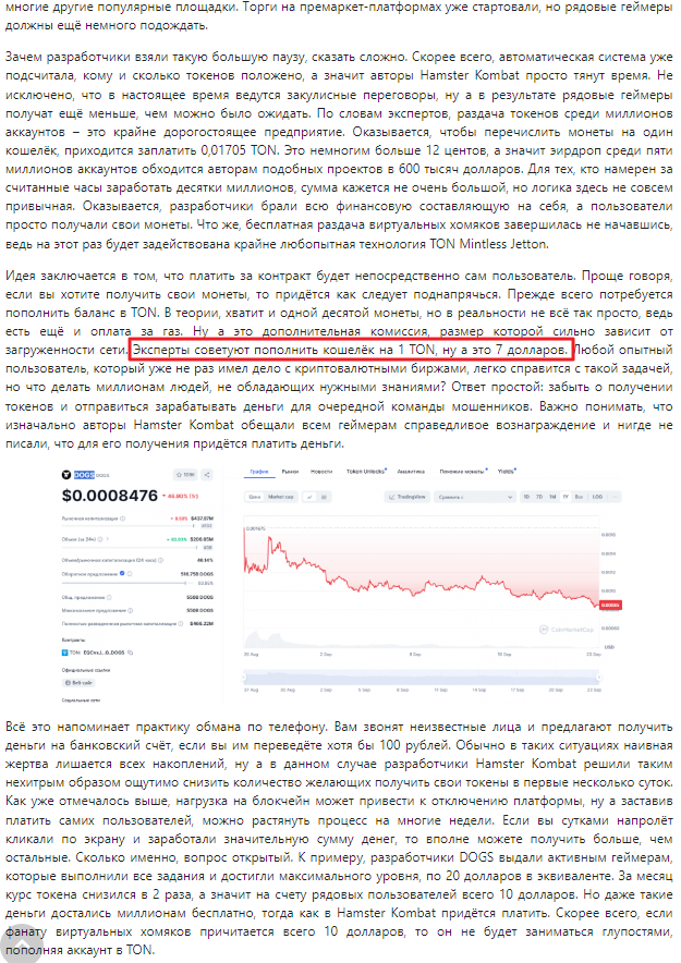 Что сделали разработчики. Десятки, если не сотни миллионов человек тапали хомяка во всем мире. Вирусная реклама, всякие уловки, надежды людей разбогатеть привлекали все новых и новых человек. Ты им пообещал, что фантики, которые они получили в игре станут криптовалютой. Потом когда они натапали, ты по алгоритму считаешь за сколько фантиков ты конвертируешь их в свои монеты. И раздаешь их людям, оставляя себе например половину от всех выпущенных тобой монет. Теперь ситуация такая, что эти сотни миллионов людей уже имеют эмитированные тобой монеты, из которых у тебя например половина в твоем кошельке. Тут начинают работать законы больших чисел. Люди начинают торговать этой монетой. Пусть по 0,001 доллару за монету, но всё-таки, если ты эмитировал например 100 миллиардов монет, и у тебя половина, то получается хорошая сумма, чтобы купить остров и больше не работать. Лохи за тебя создали стоимость придуманной тобой валюты.